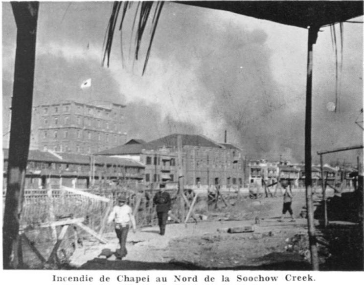 Caption on support : Incendie de Chapei au Nord de la Soochow Creek. (Fire in Zhapei to the north of the Suzhou Creek.)
