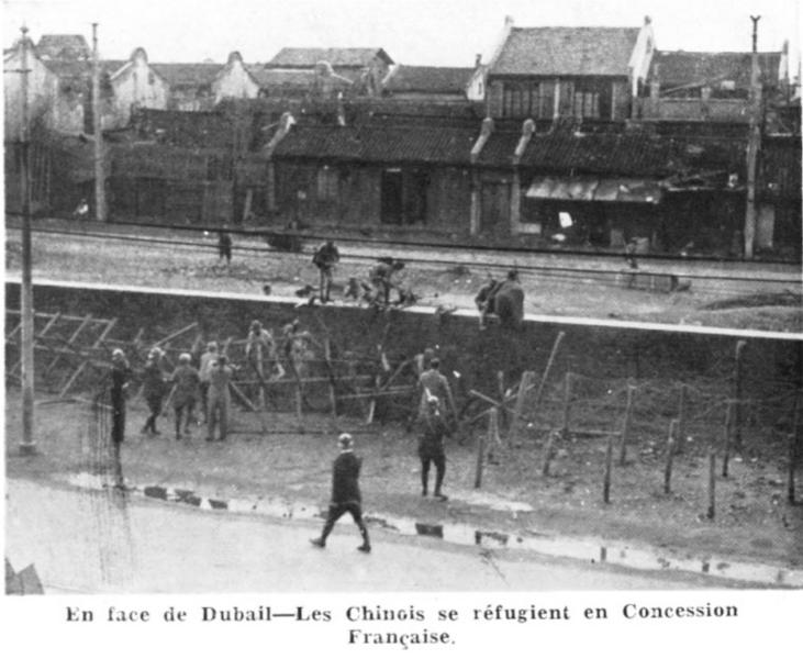 Caption on support : En face de Dubail -- Les Chinois se réfugient en Concession Française. (In front of Dubail -- Chinese people taking refud-ge into the French Concession).