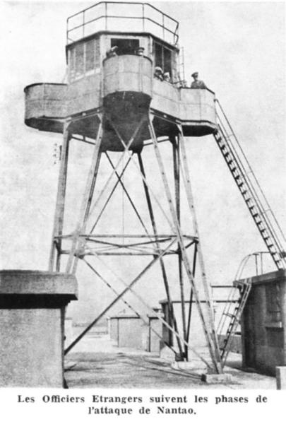 Caption on support : Les Officiers Etrangers suivent les phases de l'attaque de Nantao. (The Foreign Officers follows the phases of the Nantao attack.)