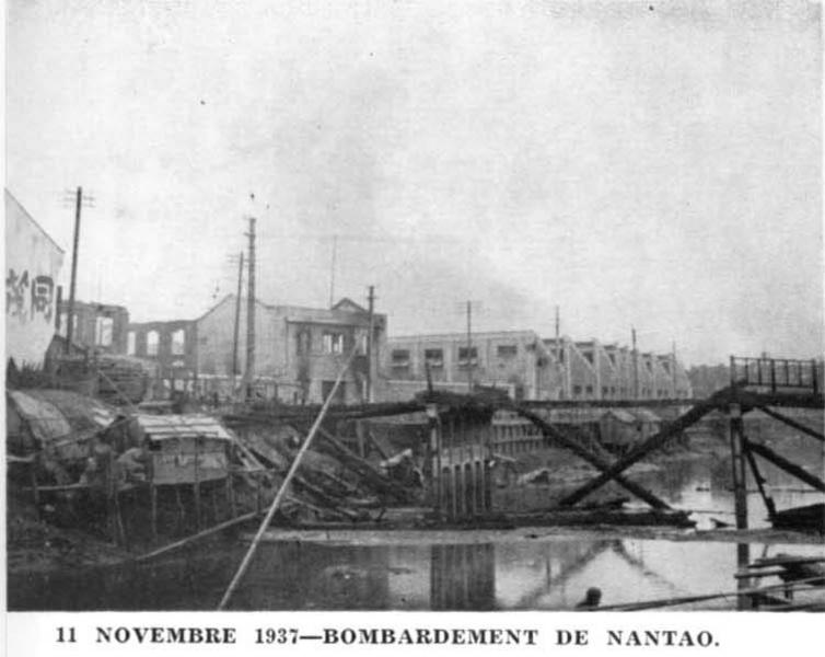 Caption on support : 11 NOVEMBRE 1937 --BOMBARDEMENT DE NANTAO. (11th November 1937 --Bombing on Nantao)