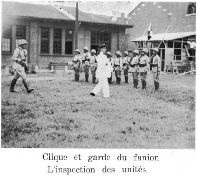 Caption on support : Clique et garde du fanion L'inspection des unités (Band and guard of the pennant The inspection of the units)