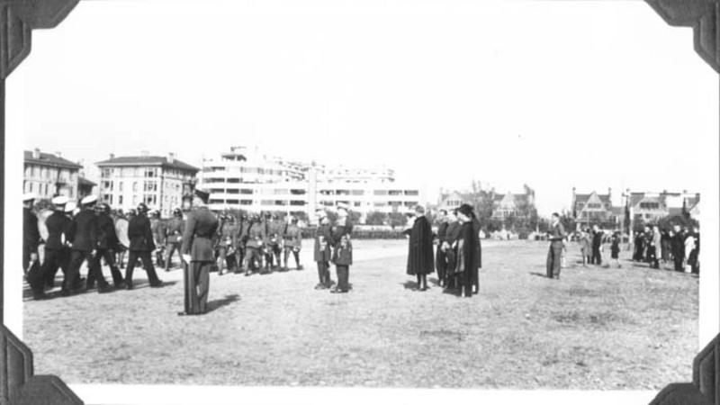 Keywords (fr) : concession;parade;cérémonie;militaire;troupe;armée;soldat;uniforme;officier;régiment;orchestre;public;bâtiment;musique