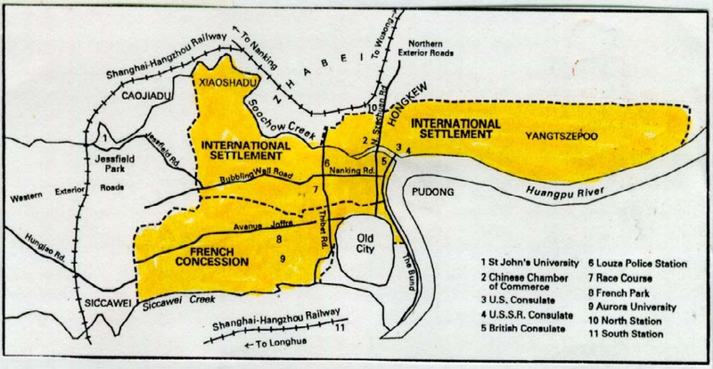 Comments : This map is given for 1920. It shows the limits of the two foreign settlements, with the location of a few major buildings.