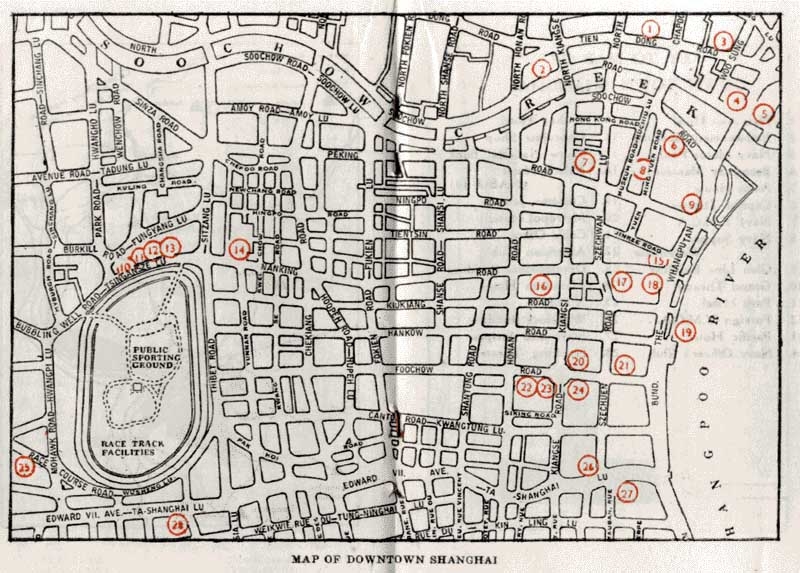 Comments : This map was published in a guide produced in November 1945 for members of the Flying Tigers, a famous U.S. military units that fought in China during the anti-Japanese war and assisted the Nationalists in their civil war against the Communists. The map actually shows the central district of the International Settlement.