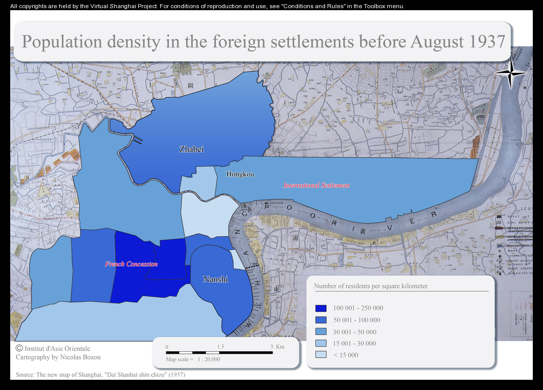 Transliteration : Density of Population in the Foreign Settlements before August 1937
