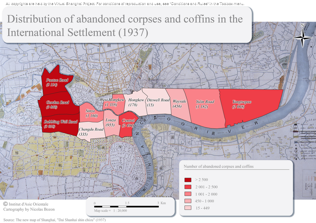 Original title : Distribution of Abandoned Corpses and Coffins in the International Settlement (1937)