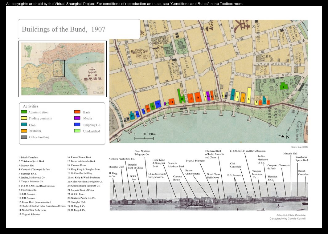 Comments : The background map is Saishin Shanhai chizu 最新上海地図 (The New Map of Shanghai City) in 1864-66 (ID269).