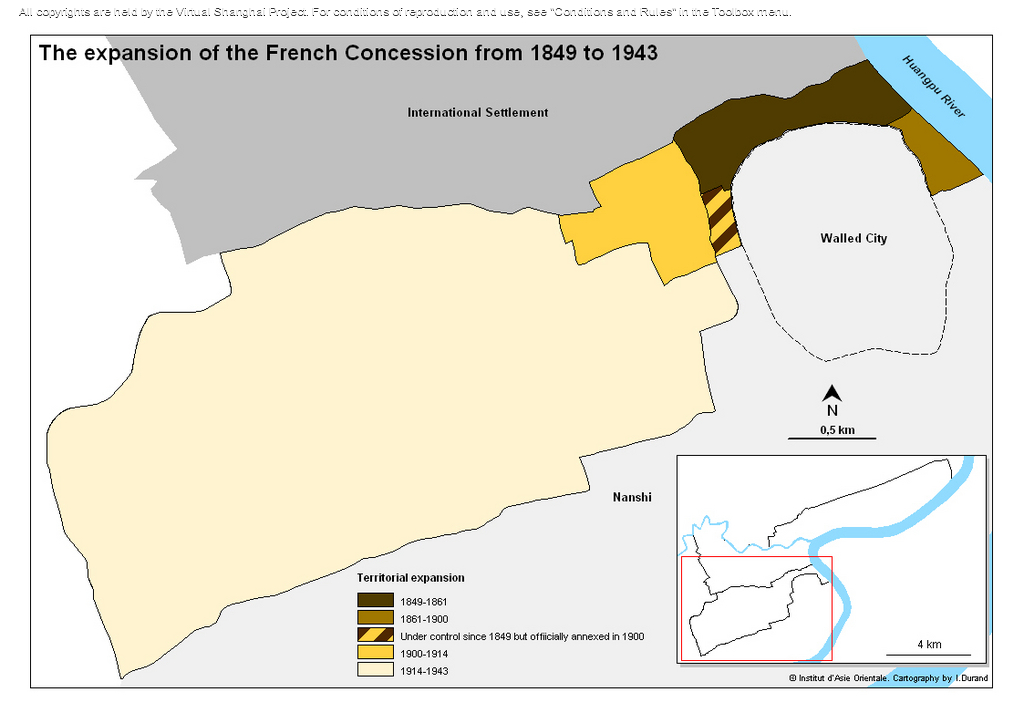 Original title : Map of the expansion of the French Concession (1849-1943)