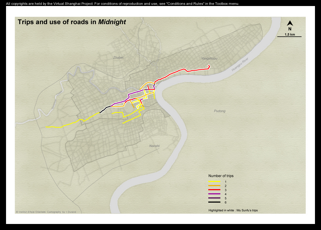 Original title : Trips and use of roads in 'Midnight' (Mao Dun)