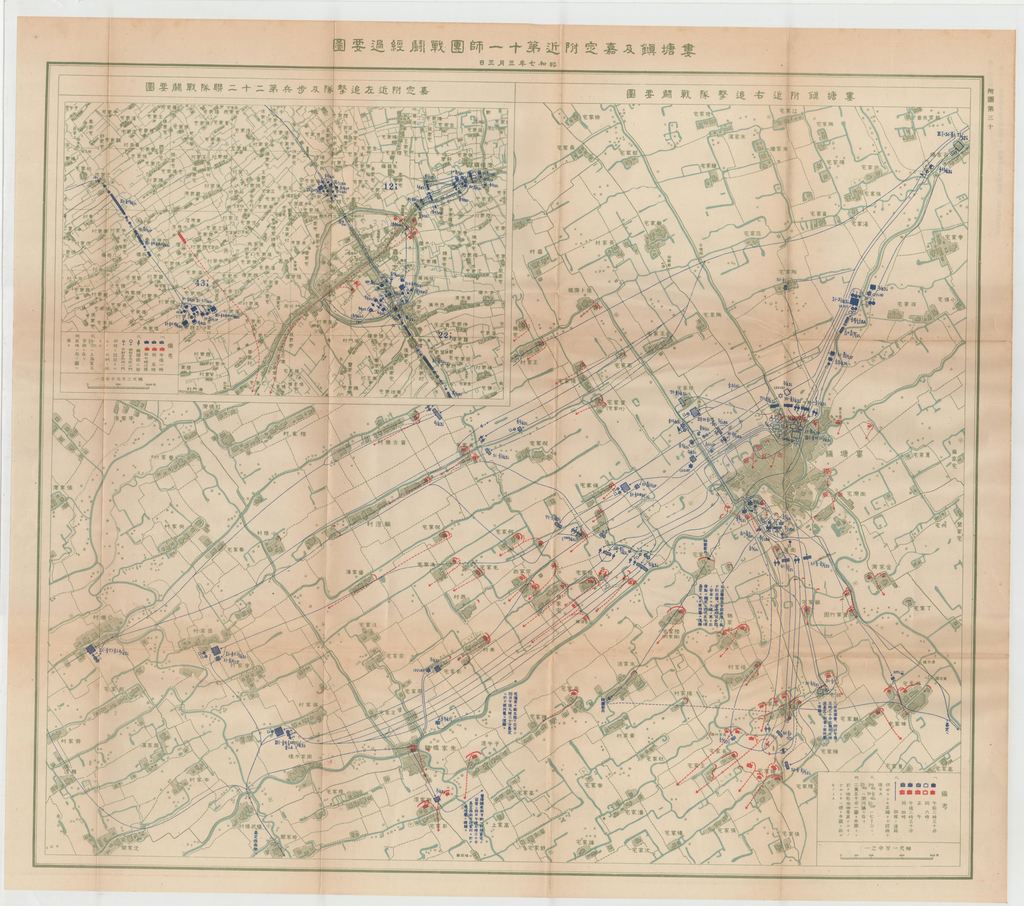 Caption on back: 第十六卷附圖第三十婁塘鎮嘉定附近第十一師團戰鬥經過要圖 昭和七年三月三日