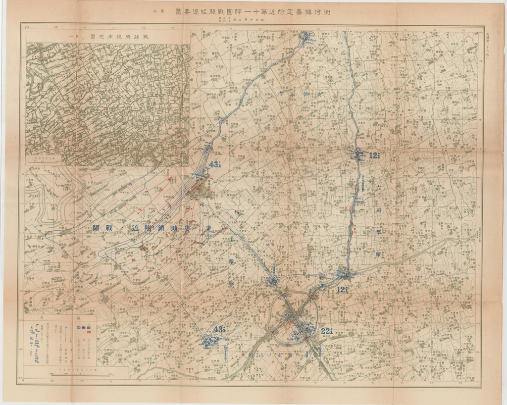 Caption on back: 第十六卷附圖第二十九其二瀏河鎮嘉定附近第十一師團戰鬥經過要圖其一 昭和七年三月自三日至四日