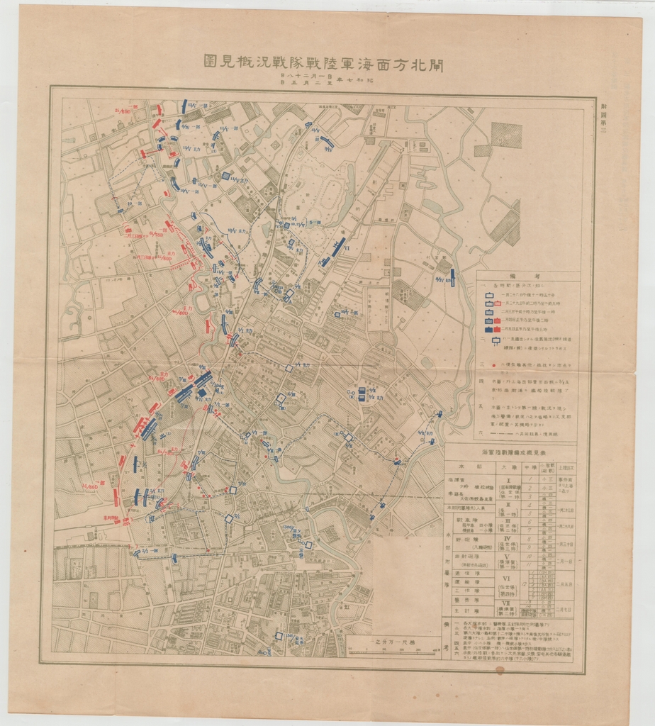 Caption on back: 第十六卷附圖第三閘北方面海軍陸戰隊戰況概見圖 昭和七年自一月二十八日至二月五日