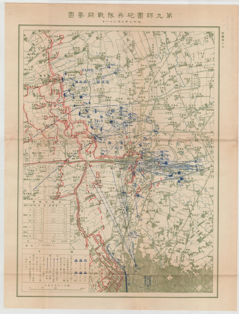 Caption on back: 第十六卷附圖第十五第九師團炮兵隊戰鬥要圖 昭和七年二月二十一日