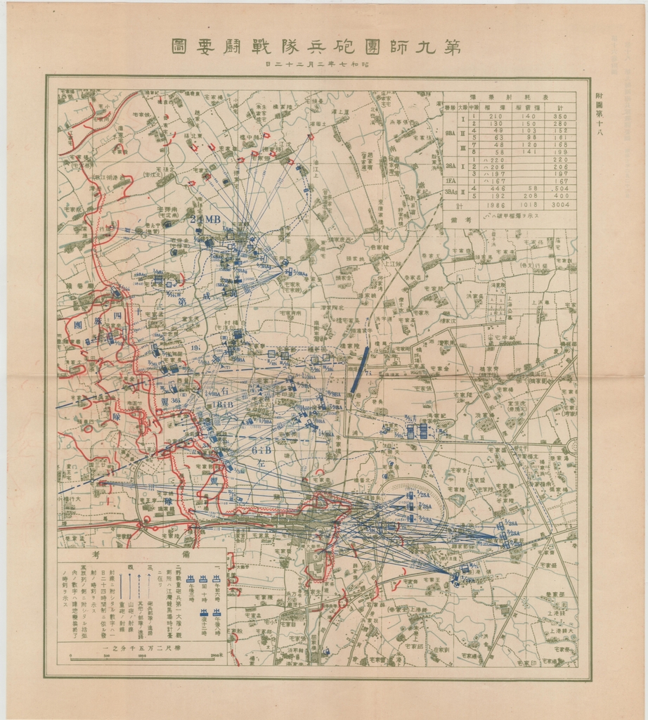 Caption on back: 第十六卷附圖第十八第九師團炮兵隊戰鬥要圖 昭和七年二月二十二日