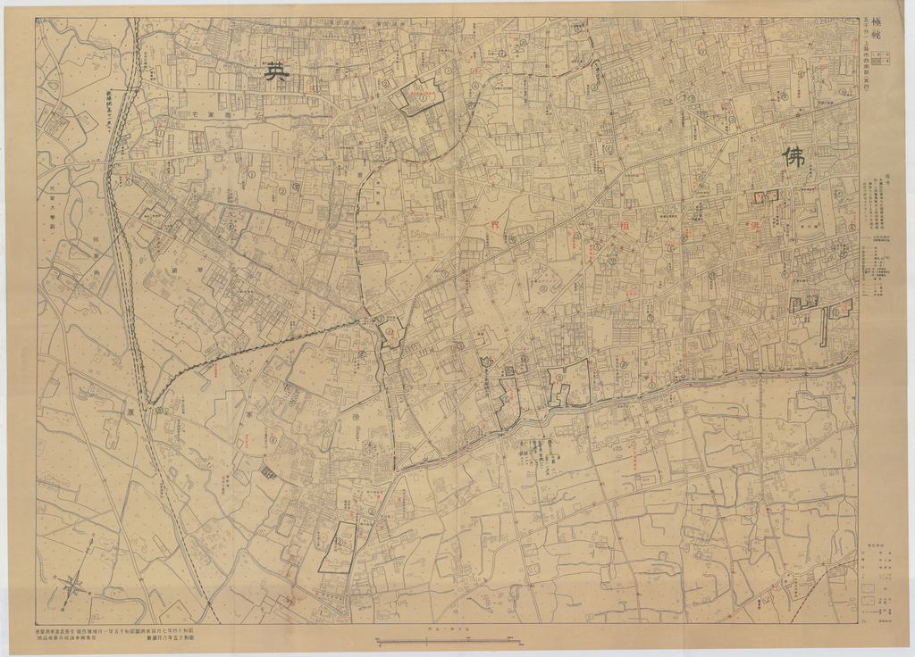 Comments : This is a detailed map of Shanghai drawn in 1940 by the Japanese army. The whole map is made up of four sheets. The present digital version is based on a reprint by Daiichi Shobō(第一書房) in 2004 (to contact publisher, see below).