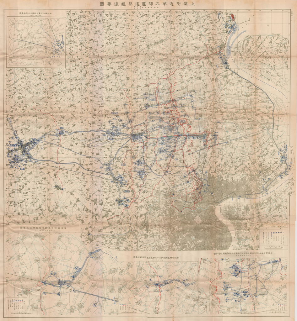 Sino-Japanese conflict in Shanghai (1932): this collection of Japanese military maps covers the unfolding of the military operations in and around Shanghai between Chinese and Japanese troops in January-March 1932. These maps were drawn after the confict, probably as documents to serve Japanese strategy in the Shanghai area and/or as study documents for the training of officers. These maps show the Japanese army had a very detailed knowledge of the local terrain. Apart from the indications they provide for an understanding of the military conflict itself, they also supply excellent geographical knowledge on the topography and human settlements in the area north of Shanghai.
