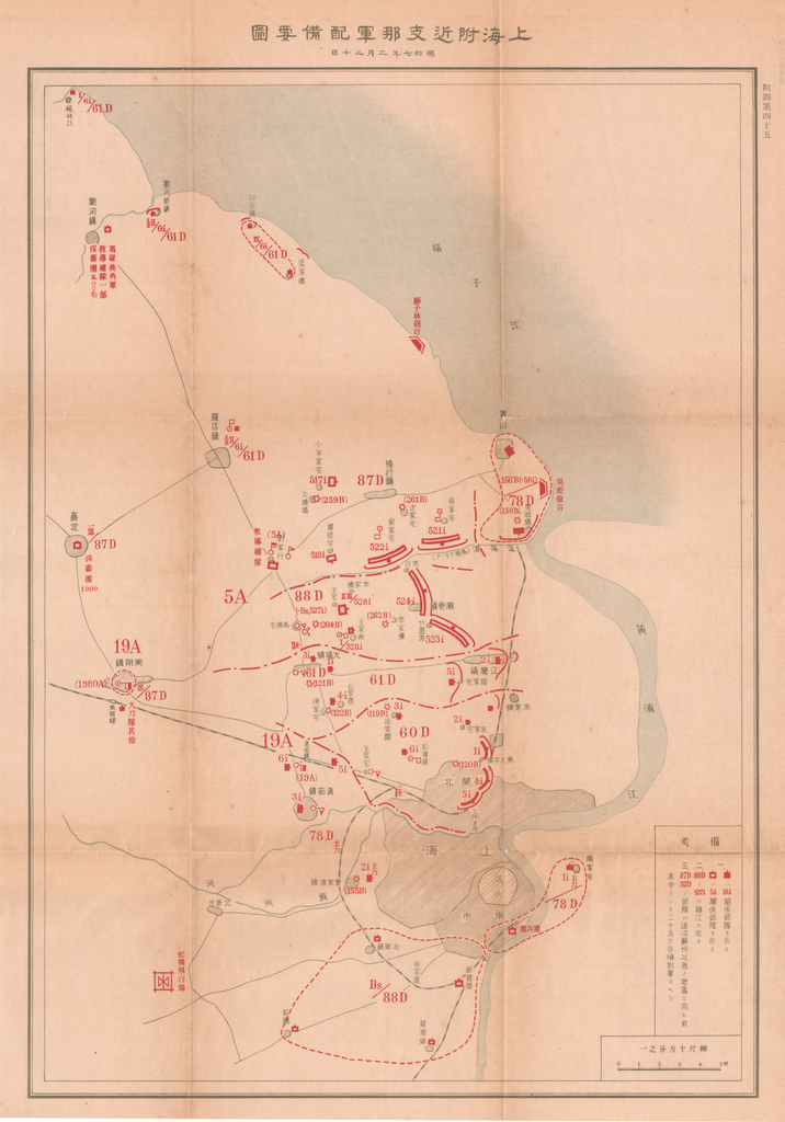 Caption on back: 第十六卷附圖第四十三上海附近支那軍備配要圖 昭和七年二月二十日