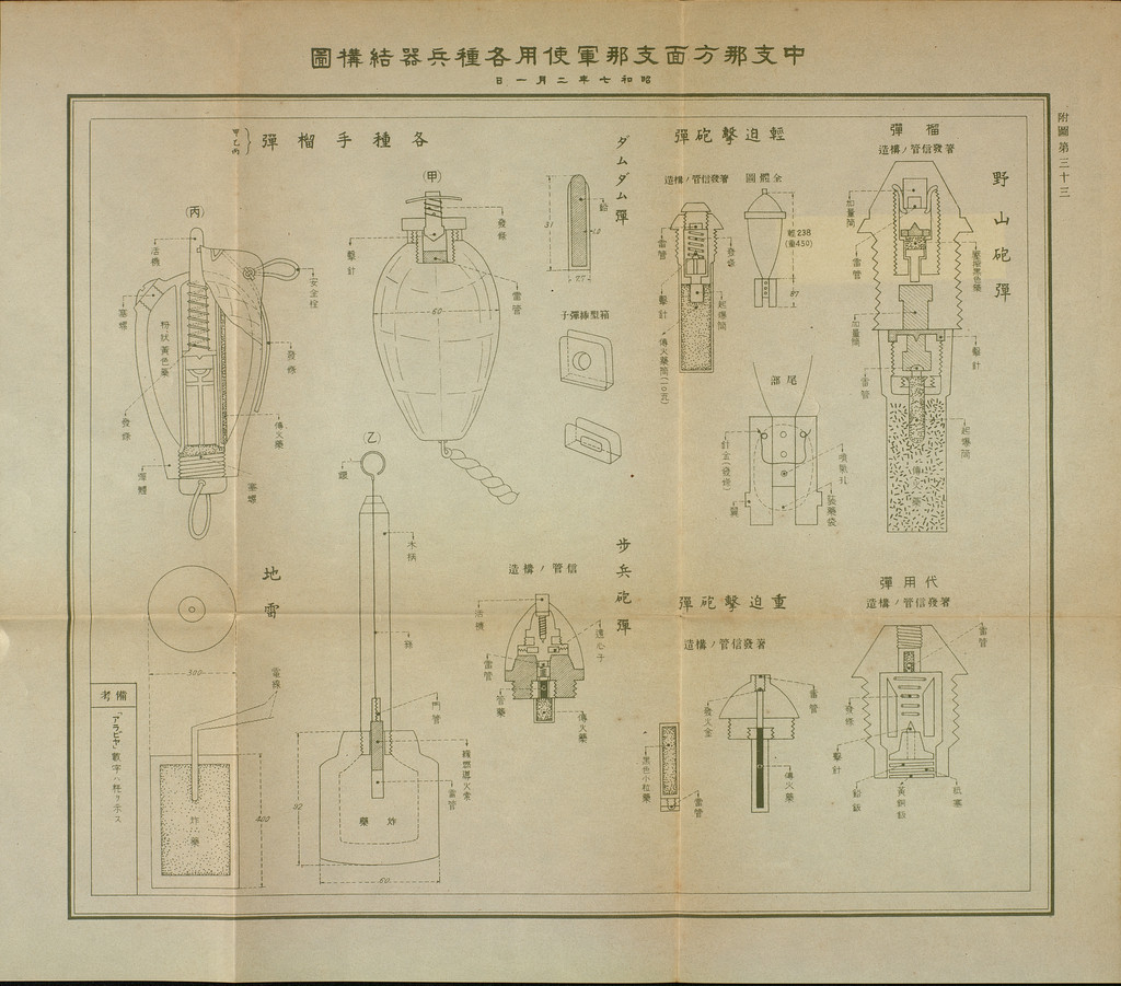 Caption on back: 第十六卷附圖第三十三中支那方面支那軍使用各種兵器結構圖 昭和七年二月一日