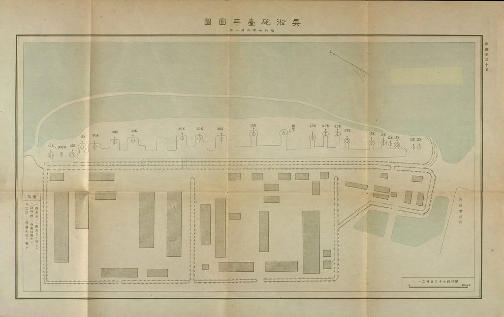 Caption on back: 第十六卷附圖第三十五吳淞砲台平面圖 昭和七年二月一日