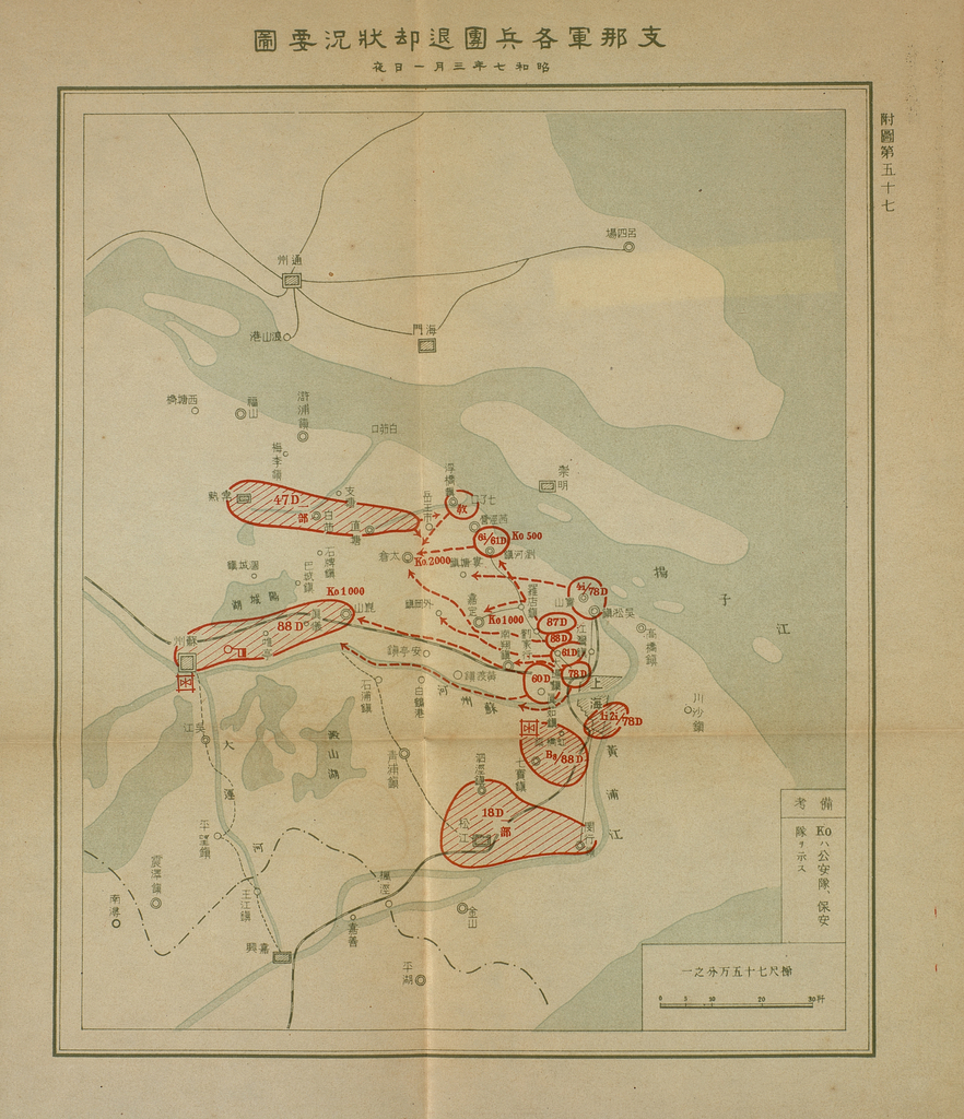 Caption on back: 第十六卷附圖第五十六七了口方面支那軍配備要圖 昭和七年三月一。二日