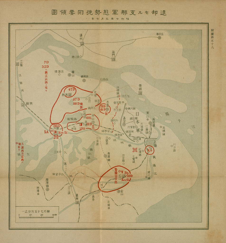 Caption on back: 第十六卷附圖第五十八退卻支那軍態勢挽回要領圖 昭和七年三月七日