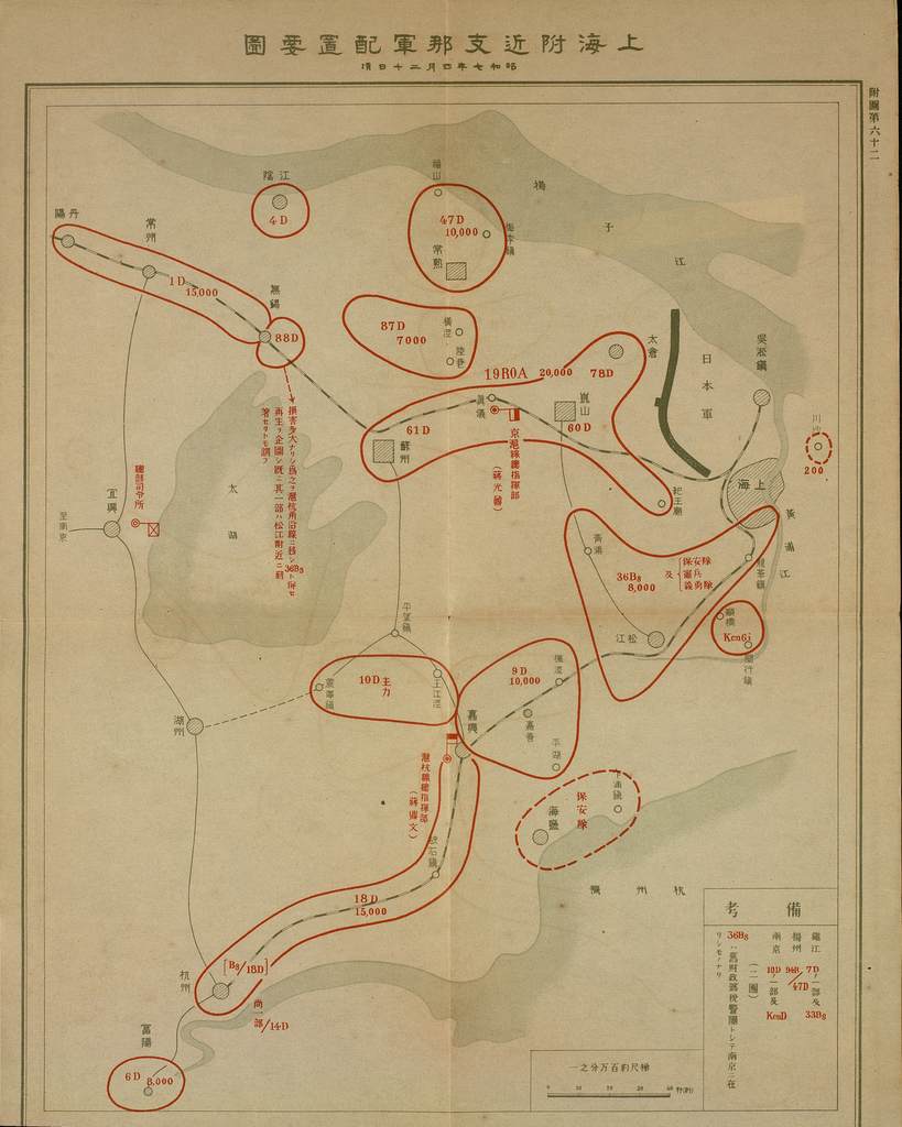 Caption on back: 第十六卷附圖第六十二上海附近支那軍配備要圖 昭和七年四月二十日