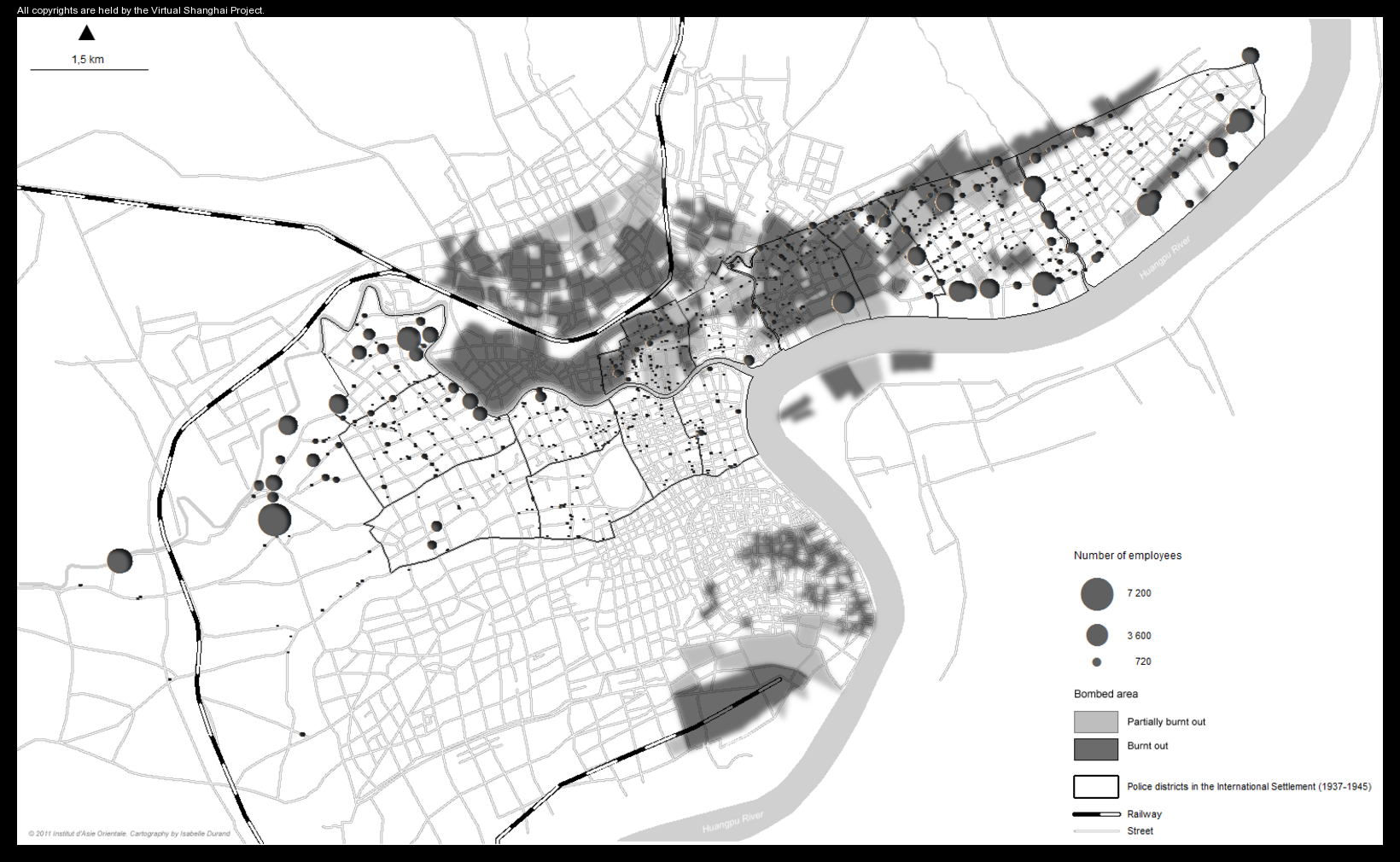 Original title : Distribution of factories in the International Settlement in 1936 and bombed areas in 1937