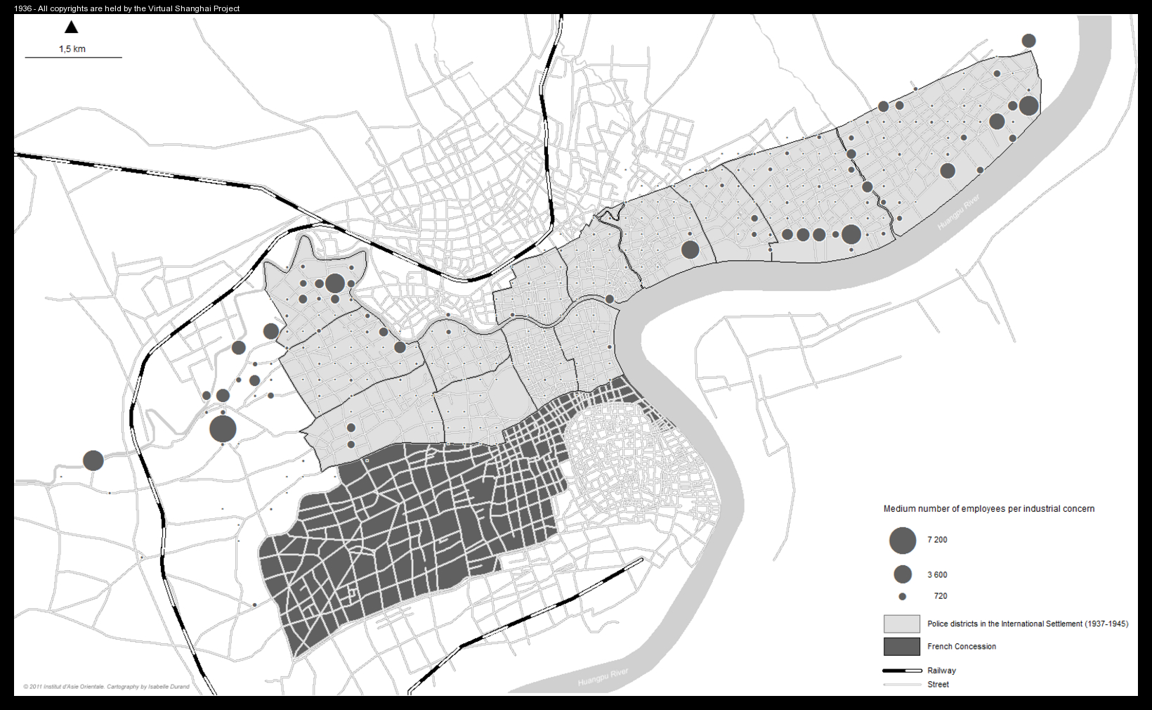 Medium size of industrial concerns in the International Settlement (1936-1940): 250 meter-Grid