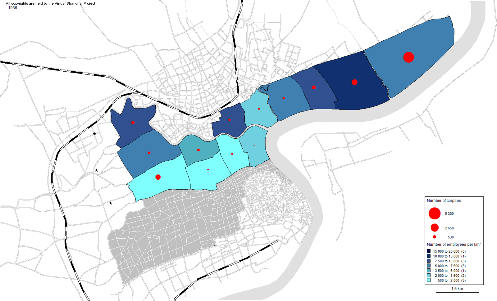 Original title : Distribution of Abandoned Corpses and Coffins in the International Settlement (1936)