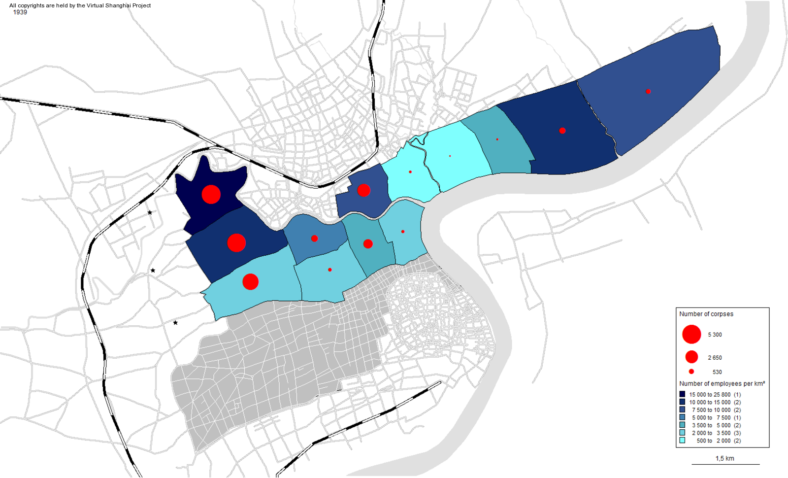 Original title : Distribution of Abandoned Corpses and Coffins in the International Settlement (1939)